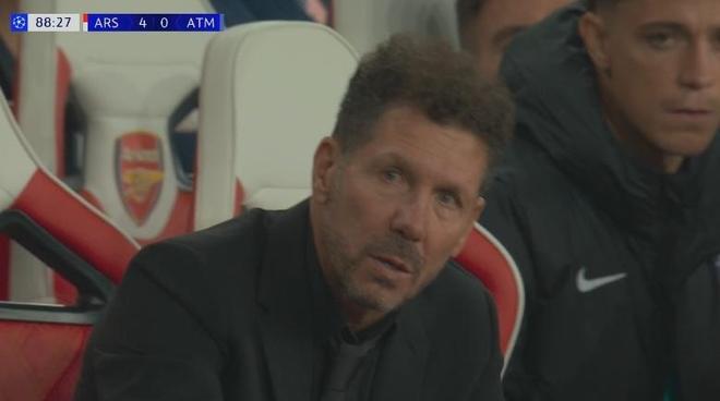 比赛上半场,马竞还能在客场与阿森纳互有攻守,并且力保球门不失。到了下半场,马竞甚至有机会依靠阿尔瓦雷斯的远射险些破门。然而就在阿森纳第57分钟,利用定位球机会率先由加布里埃尔打破僵局后,西蒙尼便坐不住了。