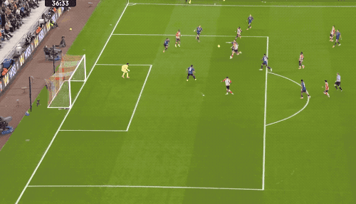 第65分钟,刚刚替补登场3分钟的埃斯特旺倒三角传中,若昂·佩德罗的进球,帮助切尔西扩大领先优势。