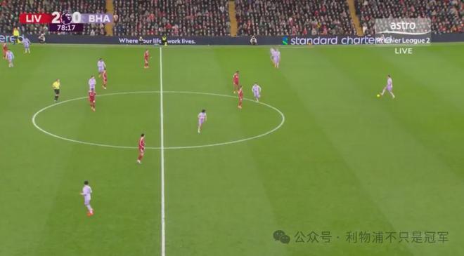 有球进攻时,维尔茨依然前插,麦卡利斯特适当后撤。无论攻防,利物浦的阵型都基本上是433。